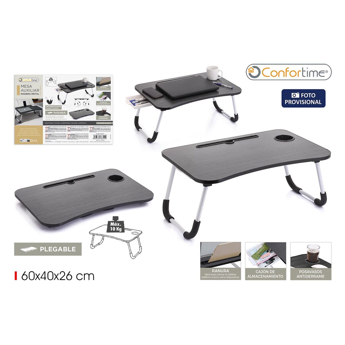 Si vous êtes passionné d'informatique et d'électronique, si vous êtes à la pointe de la technologie et qu'aucun détail ne vous échappe, achetez Table pour Portable Confortime 60 x 40 x 26 cm 6 Unités au meilleur prix.- Type: Table d'ordinateur